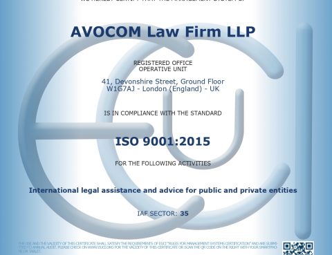 Avocom Law Firm is pleased to announce that the firm has been awarded the ISO 9001 -2015 certificate. This achievement demonstrates the firm’s dedication to ensuring compliance with the highest standards of quality management. Avocom law firm has obtained the certificate thereby showing once again the firm’s commitment to providing optimal legal services to its…