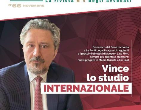 The lawyer Francesco del Bene, Avocom’s founding partner, at the front page of Le Fonti legal magazine: an interview on international business. Press Review
